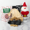 Treat both the humans and pups in your life with Santa’s Special Holiday Gift Basket! Arranged on a rustic, wooden, Santa hat serving tray, this festive basket includes two packs of holiday-themed dog treats; a cheerful, 10-inch, Santa dog toy; a 6-ft handmade leash and slip collar set (specify collar size below); a 12-ounce bag of our Whiskey Barrel Aged Coffee; and a “Probably Bourbon” campfire mug for holiday sipping. Beautifully wrapped with a giant bow and gift tag, this is the perfect holiday gift for pet lovers.